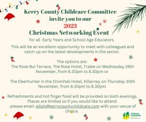Please pre book your place with catherine@kerrycountychildcare.com or kathryn@kerrycountychildcare.com