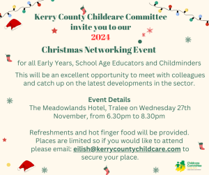 Staff, Managers and Owners of childcare services in Kerry are welcome to attend network meetings. Childcare Providers will be informed of 2024 dates for network meetings throughout the county.