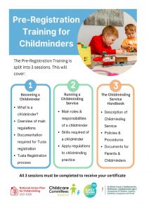 The Childminding pre-registration training is a mandatory course for anyone who intends to register with Tusla for a childminding service.