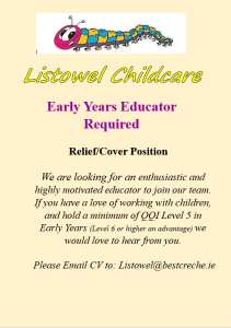 Listowel Childcare – Early Years Educator (Relief / Cover)