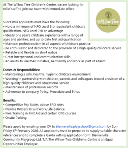 Willow Tree Childrens Centre, Tralee – Relief Staff