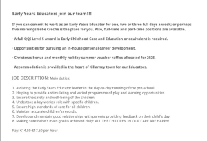 Cromane Community Childcare – Early Years Educators (FT and PT)