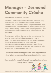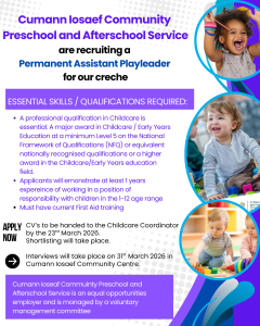 Cumann Iosaef Community Preschool and Afterschool Service – Assistant Playleader