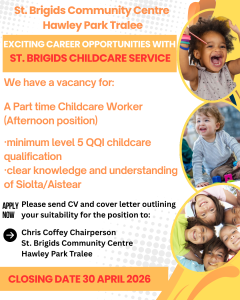 St Brigid’s Childcare Service, Hawley Park, Tralee – Childcare Assistant (Afternoon Position)