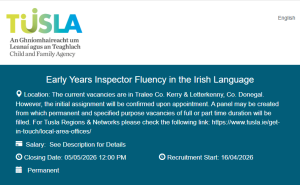 Tusla, Tralee – Early Years Inspector Fluency in the Irish Language